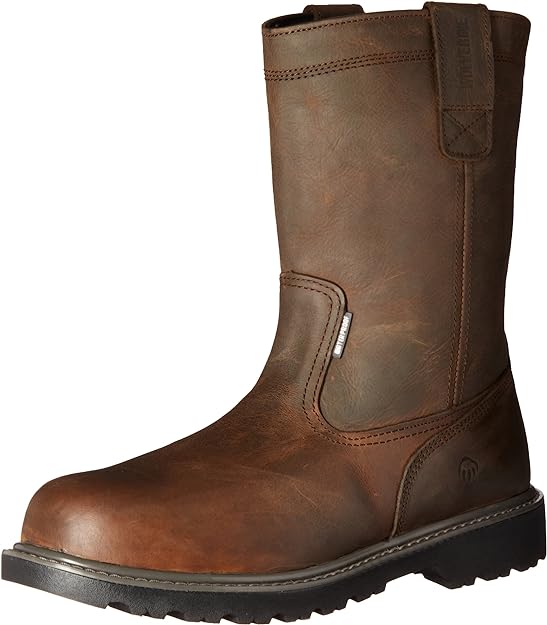 Georgia Giant Men’s Pull-On Wellington Work Boots: These boots offer the convenience of a pull-on design for quick and effortless donning and doffing. The full-grain leather construction with a waterproof membrane ensures durability and keeps feet dry. The slip-resistant outsole provides excellent traction, and the padded collar and tongue add comfort. The steel shank offers arch support and stability, and the boots meet EH standards for safe work around electrical hazards.